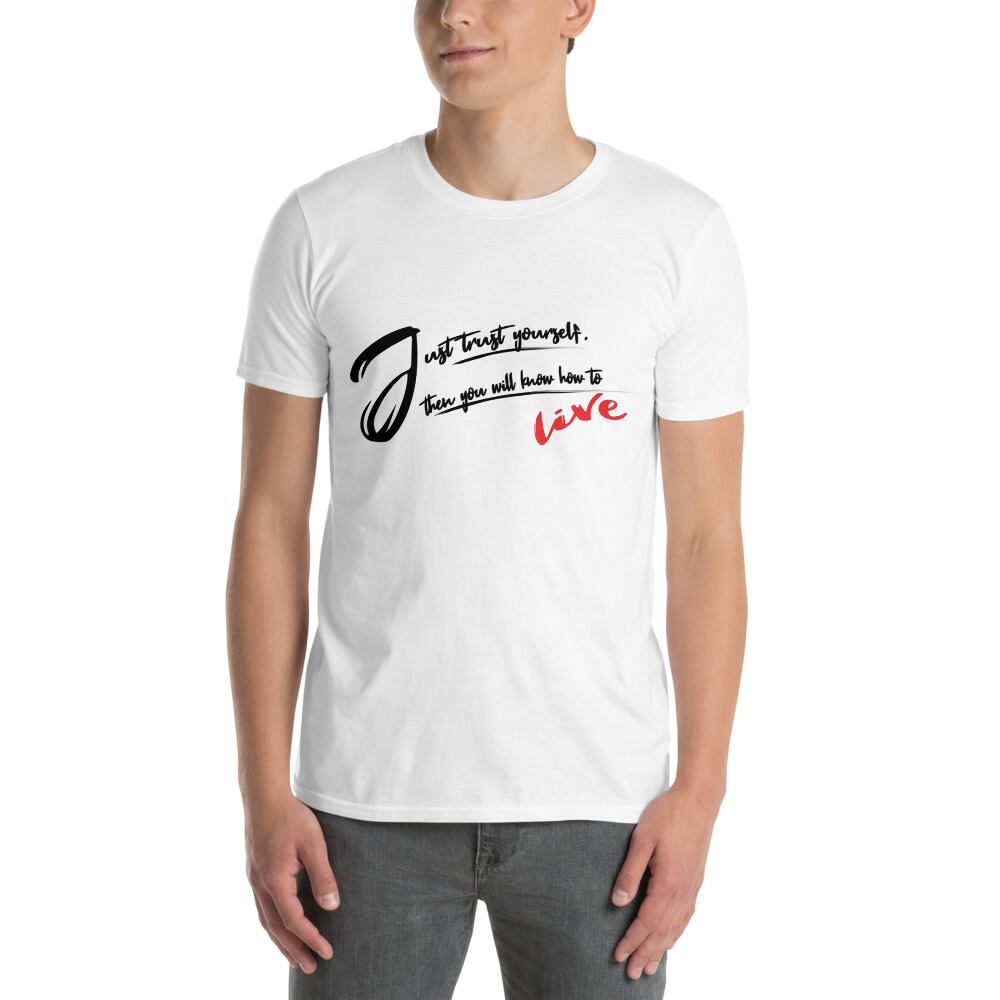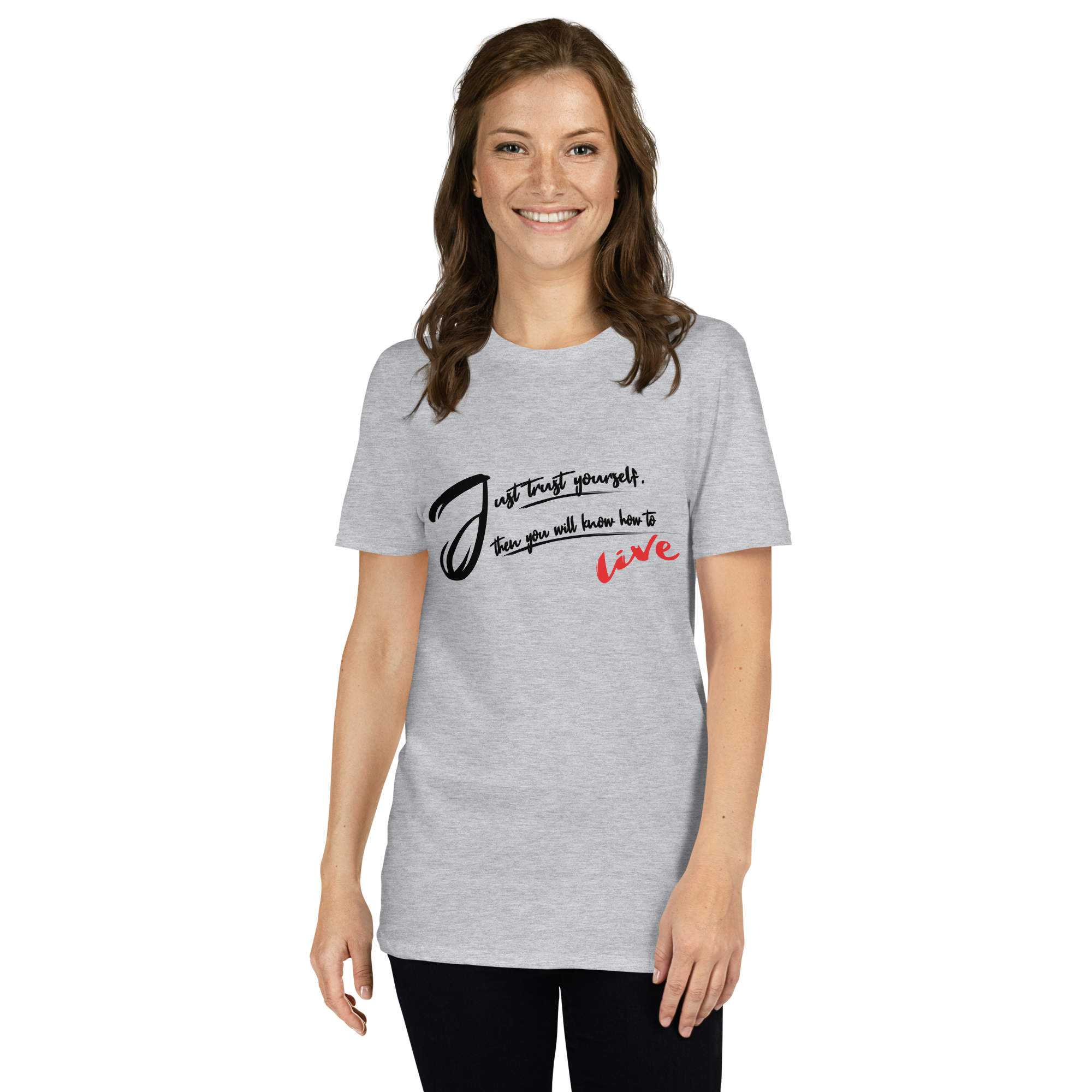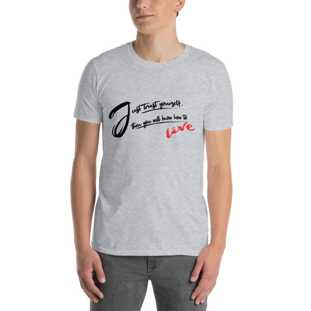 【白灰】半袖ユニセックスTシャツ:"Just trust yourself, then you will know how to live."